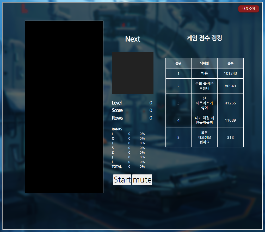 갠홈에 테트리스 랭킹을 띄우고야 만 것입니다...